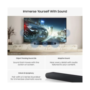 Samsung Q-Symphony. Boost your viewing experience with integrated sound from your TV and soundbar. Why let a soundbar or TV work solo when you can amp up your entertainment with even more powerful speakers that work together seamlessly, for a fully immersive sound experience.