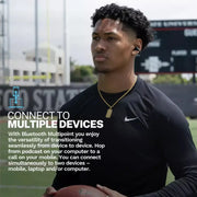 With Bluetooth Multipoint you enjoy the versatility of transitioning seamlessly from device to device. Hop from podcast on your computer to a call on your mobile. You can connect simultaneously to two devices – mobile, laptop and/or computer.