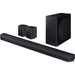 Experience a 9.1.4 channel surround sound that envelops you completely and creates a sound space that reproduces even the finest details. Q-Symphony is a Samsung-exclusive technology that allows for simultaneous playback of TV speakers and the soundbar. This results in an impressive sound synergy. The current version of Q-Symphony offers optimized sound for all channels, powered by AI technology that remasters the incoming audio material.