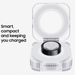 Even while charging in its crystal-clear Charging Case, the Galaxy Ring is a sight to behold. The delicate glow of the light around the Multi-purpose button indicates the battery charging level. The Charging Case can be charged wirelessly too, so simply place your Galaxy Ring securely in its case when you're on the go, and place it on a wireless charging pad for easy charging.
