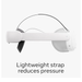 This compact, lightweight strap reduces facial pressure and evenly distributes weight for a more comfortable fit.