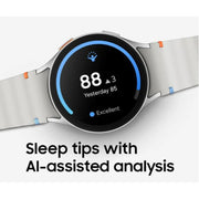 - Personalised Sleep Coaching: A better bedtime routine starts with Sleep Tracking. Get a daily sleep score, your sleep heart rate, personalised Sleep Coaching and more. Understand your nightly patterns accurately and get tips that help you to enhance your sleep.          - Advanced Fitness Tracking: Take your fitness game to the next level with Galaxy Watch7. Create your ideal workout routine with warm-ups, cooldowns and breaks in between. Compete with your past records to stay motivated. Easily track your exercise in water with WaterLock Mode.