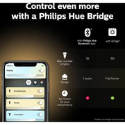 - Unlock the full range of smart functions, such as out of home control and schedules, with a Hue Bridge (sold separately)