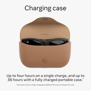 A fully charged pair of Ray-Ban Meta sunglasses can last up to four hours with moderate use, including shooting and syncing up to 100 videos or 500 photos. Plus, every pair of Ray-Ban Meta sunglasses comes with a charging case that provides up to 32 more hours of use, so you can recharge on the go and do whatever comes your way comfortably.