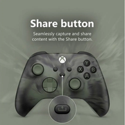 Gear up for battle with the Xbox Wireless Controller. This Nocturnal Vapor Special Edition comes in a dark and light green swirly pattern that's unique to every controller. No two are the same! It's got an updated D-pad and textured grips on the triggers and bumpers, so you'll stay accurate and in control. And it's more ergonomic than ever too. In fact, it fits such a wide range of hand sizes that the whole family can take a turn. Plus, now anybody can capture and share their stats or skills. Just hit the Share button.