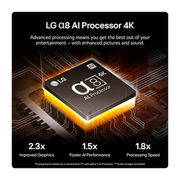 - For the clearest picture, the swiftest response and more, the LG utilises the power of AI with its latest processor – Alpha 8 AI. With a 1.6x increase in processing speed and 2.3x enhancement in graphic performance, the picture is more detailed and smoother flowing than ever. AI is seamlessly integrated, with LGs AI Picture Pro system delivering optimised image quality from HDMI and built-in tuner sources.
